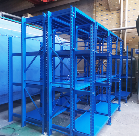 模具貨架是貨架的一種,簡稱:模具架,又稱抽屜式貨架,主要存放各種模具物品,根據承載能力要求分為輕型模具貨架和重型模具貨架。貨架頂部可配置移動葫蘆車,以方便模具的起吊。